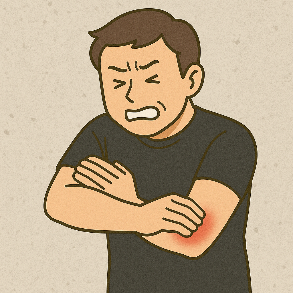 肘の外側にある腱や筋肉に負担がかかり、炎症や微細な損傷が起こることで痛みを感じます。