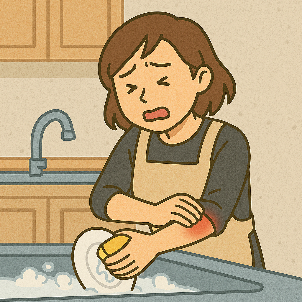 痛みを強くする動作(重い荷物を持つ・強い握り動作)はできる限り避けましょう。