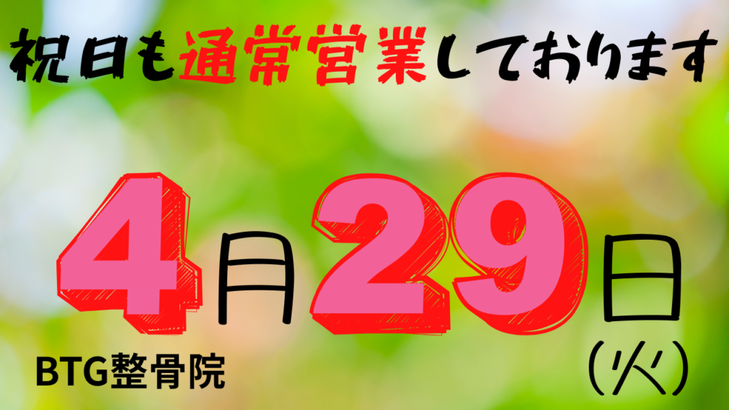 4月29日(火)祝日もBTG整骨院は通常営業!!